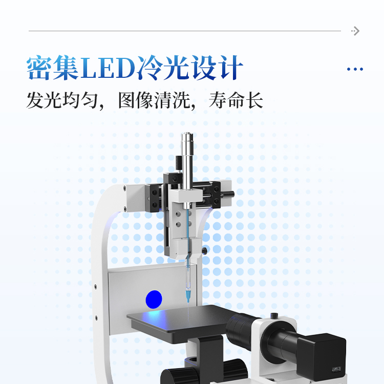3. 采用工业级密集可调LED冷光源系统(寿命25000H以上),保证成像更清晰,同时避免额外热度所导致的小液滴挥发;